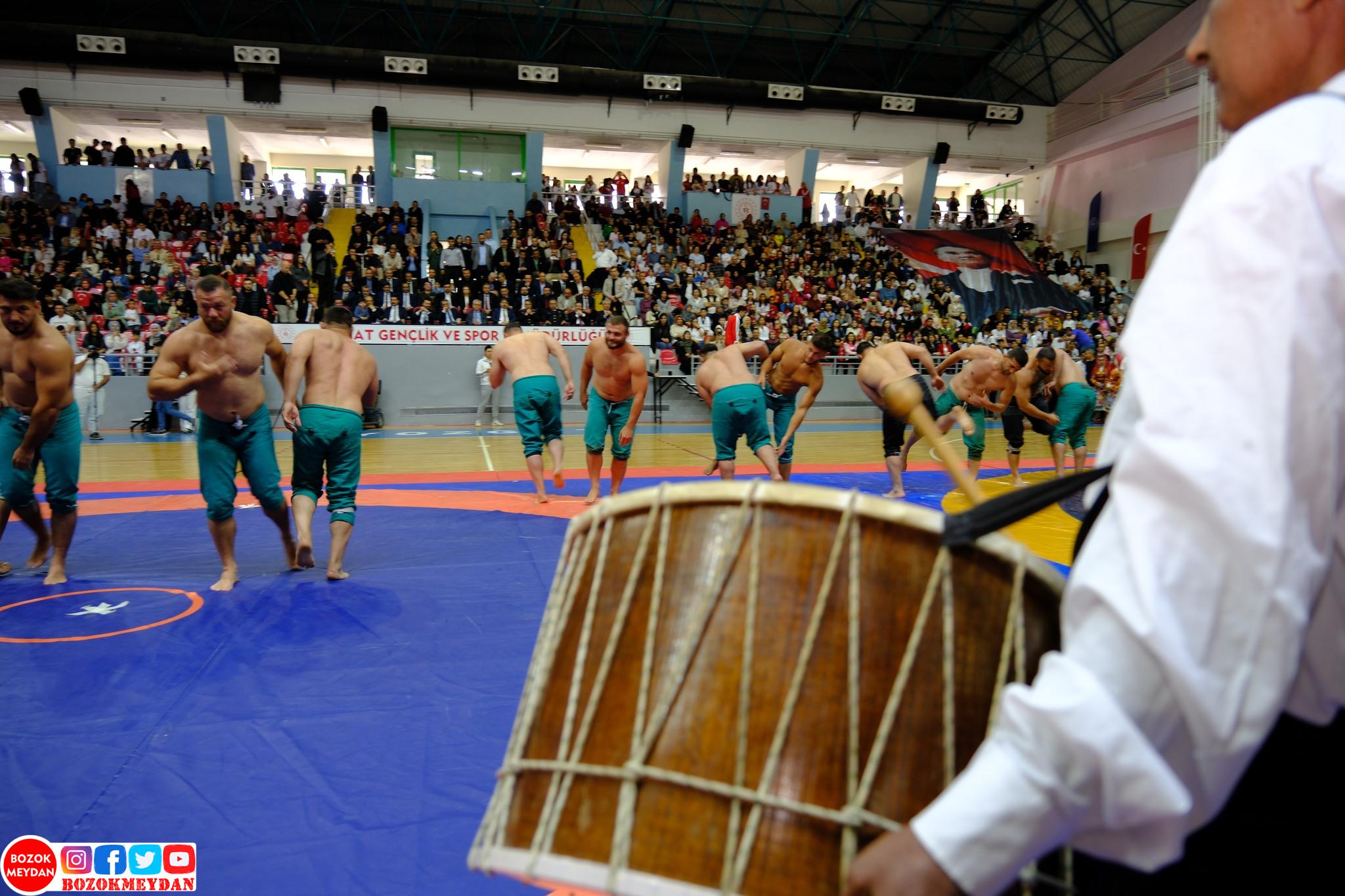Kutlamalar kapsamında düzenlenen Karakucak Güreşi finalleri, Rıza Kayaalp Spor Salonu’nda büyük ilgiyle izlendi. Müsabakalarda kıyasıya mücadele eden pehlivanlar, hem seyircilere unutulmaz anlar yaşattı hem de Ata sporu güreşin ruhunu yansıttı. Final karşılaşmalarının ardından başarılı sporculara ödüllerini Yozgat Valisi Mehmet Ali Özkan takdim etti.