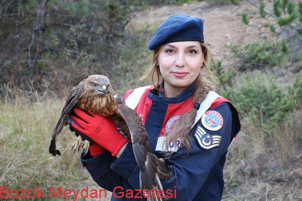 Jandarma’dan Yaralı Şahin Kuşu’na Şefkat Eli