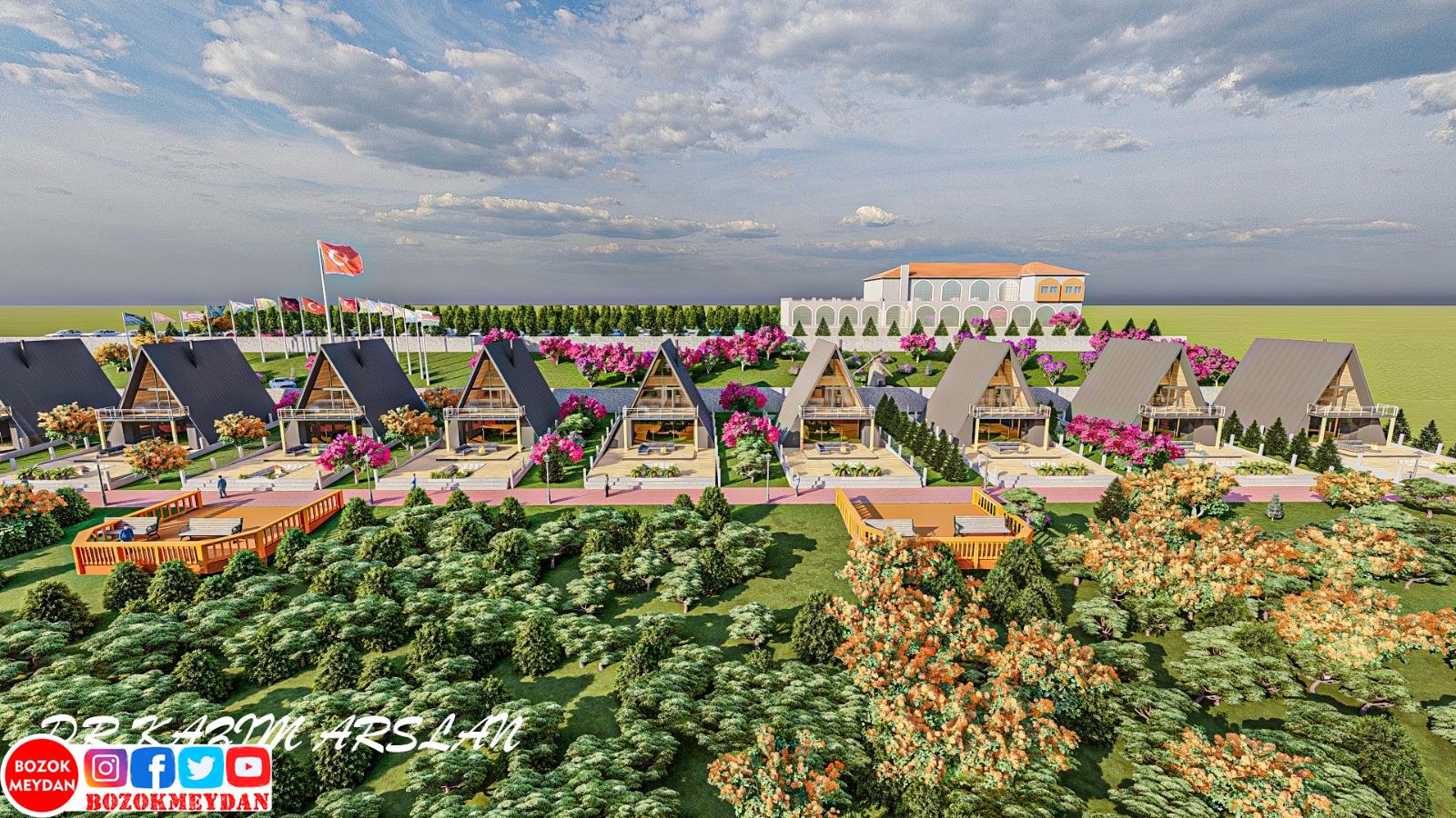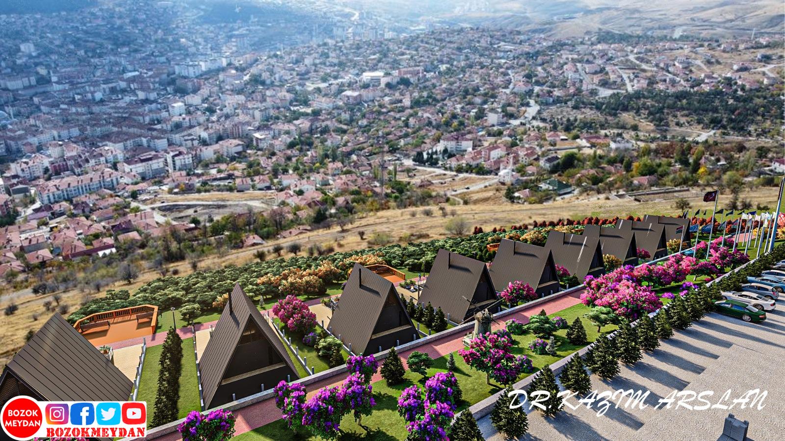 İkinci projesinin Nohutlu Tepesi, Bungalov Otel projesi olduğunu söyleyen ve bu proje ile Nohutlu tepesi ve Spor Vadisinin birbirini tamamlayacak bir proje olacağını aktaran Arslan; “ Bugünkü açıklamak istediğimiz projenin ismi Nohutlu Tepesi, Bungalov Otel projesi. Nohutlu tepesinin ön bölgesinde, Yozgat’ı gören bölgesinde düşündüğümüz bir proje. Orada teraslar var. Bu teraslarda düşündüğümüz ve tamamen Yozgat manzaralı olarak düşündüğümüz bungalov otel projesi. Bu projenin özelliği şu, Yozgat’ın kültür, turizm ve tanıtımına katkı sağlayacak bir proje olarak biz bunu düşündük. Çünkü ben Yozgat’ın gelişmesinin, Yozgat’ın büyümesinin biraz da turizmle ve kültürel yatırımlarla Eğitim yatırımlarıyla mümkün olabileceğini baştan beri düşünüyorum. Nohutlu Tepesi’ni niye seçtik? Biliyorsunuz Nohutlu tepesinin hemen arkasında geçmiş valilerimizden Abdülkadir Yazıcı Bey’in başlattığı bir spor valisi projesi var. Oradaki spor vadisiyle bunu entegre etmek maksatlı olarak biz Nohutlu tepesinde bu otel projesini düşündük. Bunu gerçekleştirdiğimiz zaman aynı zamanda Spor Vadisi’ndeki bir takım aktivitelerin de gelişmesini sağlayabileceğimizi düşünüyoruz” ifadelerine yer verdi.