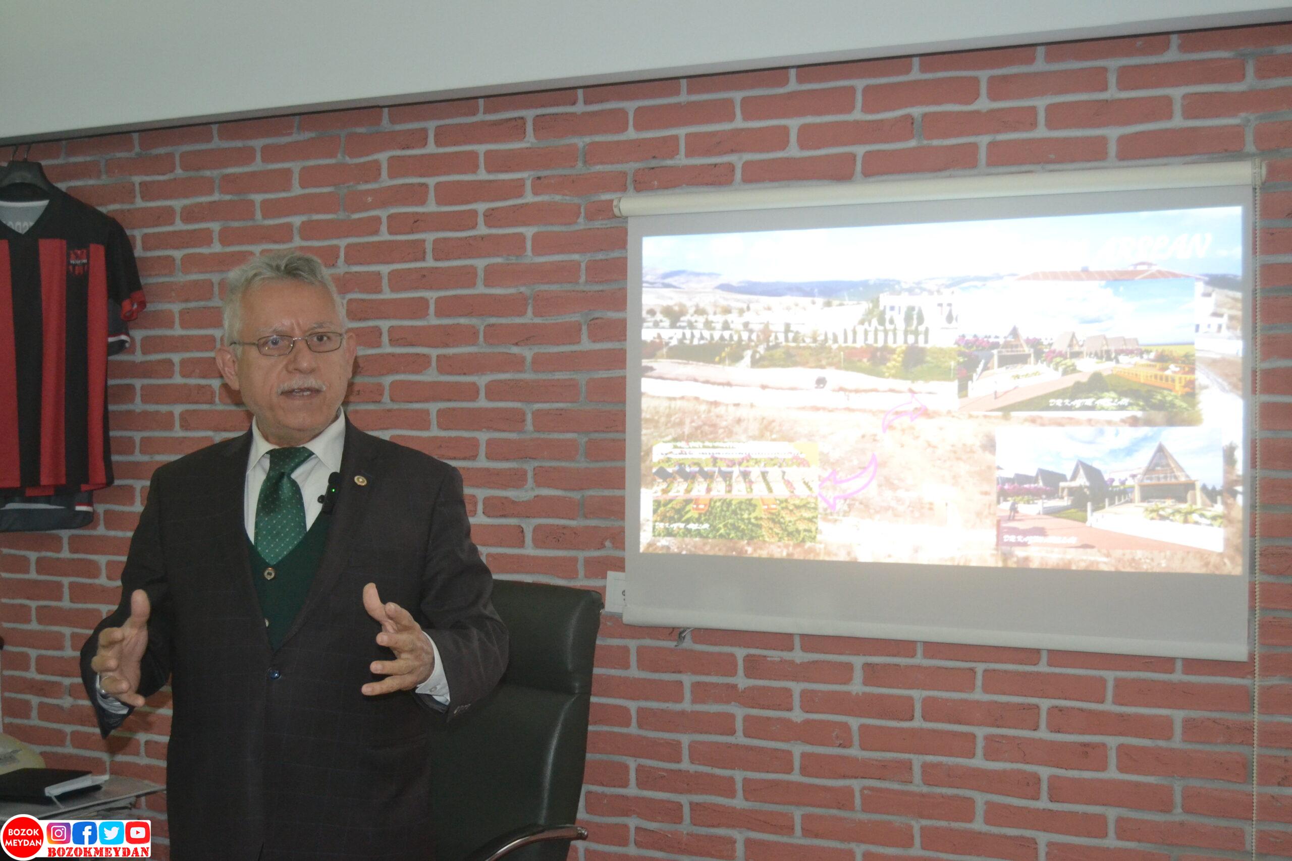 Kurulması elzem olan spor kamp merkezine de değinen Arslan Nohutlu Tepesi, Bungalov Otel projesin spor kamp merkezinin önünü açacak bir proje olduğunu ifade ederek açıklamalarına şu şekilde devam etti: “Aynı zamanda bu proje ileride açıklayacağımız Yozgat’ın bir spor kamp merkezi, sporcu kamp merkezi olmasına yönelik yapacağımız çalışmaların bir adımı oluyor. Çünkü şunu biliyoruz Yozgat’ta Yozgat’ın kamp merkezi olması noktasında sporcu kamp merkezi olması noktasında çok büyük bir talep ve bunun Yozgat ekonomisine çok büyük bir katkısı olacak. Ama bunu gerçekleştirebilmemiz için Yozgat’ta yeteri sayıda otel ve sportif tesis olması lazım. Bu noktada bu aynı zamanda o yapacağımız projenin de bir adımı oluyor. Burada yapmak istediğimiz otel tamamen Yozgat manzaralıdır. Yozgat’ın seyir terasları olacak. Sosyal tesis olarak mevcut Nortlu Tepesi’ndeki binalarımızı kullanmak istiyoruz. Onları da daha çok değerlendirmek istiyoruz. Orada tesisin önemli bir kısmı yılın büyük bir bölümünde atıl olarak duruyor. Mevcut tesisde değerlendirmek suretiyle burada inşallah çok güzel bir ve Yozgat’a yakışır, Yozgat’a dışarıdan insanları çekmeye yönelik olarak bir otel projesi gerçekleştirmek istiyoruz. Yozgat’ı geleceğe taşımamız lazım. Yozgat’ın kabuğunu kırması lazım. Bunu geçen de söyledim. Mevcut yerde Yozgat’ı geliştirmek mümkün değil. Yozgat’ı dışarıya açmamız lazım. Yozgat’a dışarıdan bir takım insanların gelmesini sağlamamız lazım. Yozgat’ı beğenilen imrenilen, tercih edilen bir şehir yapmamız lazım. Bu da bir takım yatırımlarla mümkün Inşallah Nohutlu Tepesinde yapacağımız bu bungalov otel projesi de bize çok büyük bir hareket alanı sağlayacak. Yozgat’a çok büyük bir hareket alanı sağlayacak. Her zaman söylüyorum. Bir sevda var. Bu sevdamızın adı da Yozgat’tır. Yozgat’a sürekli olarak bir şeyler yapmanın gayreti içerisindeyiz. Sürekli olarak bir şeyler yapmanın telaşı içerisindeyiz. Benim belediye başkanı olup olmamamın da çok önemi de yok. Biz aklı yeten bir insan olarak Yozgat’ın ufkunu açabilecek proje topluma sunmak zorundayız. Allah nasip eder biz yaparız. Nasip olmaz başkaları yapar ama. Önemli olan Yozgat’a bir şeylerin yapılmasıdır. Bu Yozgat’a ufuk açacak projeleri paylaşıyoruz ki ne şekilde olursa olsun bir gün bunları Yozgat’ta gerçekleştiğini görmüş olalım. Zaten ben her zaman söylüyorum. Hayali olmayan hiçbir insan hiçbir şey yapamaz. Eğer yaşadığınız yerle ilgili, yaşadığınız şehirle ilgili bir hayaliniz yoksa oraya bir şey yapamazsınız. Sonradan, düşünerek, sonradan planlayarak, sonradan birtakım ajansların yönlendirmeleriyle, şunlarla, bunlarla bir şey yapamazsınız. Önce bir hayaliniz olacak. Onun için ben her zaman söylüyorum. Allah bana nasip etti. Saat kulesinin dibinde boyacılık da yaptım. Ama hemen saat kulesinden yüz metre yukarıda belediye binasında belediye başkanlığı da yaptık. İlk okuldan, ortaokuldan itibaren, liseden itibaren Yozgat’ın çamurlu, topraklı sokaklarını adımlarken hep Yozgat’la ilgili hayaller kurduk. Yozgat şöyle olmalı dedik, Yozgat böyle olmalı. Yozgat yaşanmak istenen bir şehir olmalı, imrenilen bir şehir olmalı. İşte biz toplumda bu hayallerimizi paylaşıyoruz. Çünkü geçmişte iki bin on dört iki bin on dokuz yılları arasında yapmış olduğum belediye başkanlığında Yozgat için ne söz vermişsek hepsini yerine getirdik. İnşallah bu dönemde de söz verdiğimiz her şeyi yerine getireceğiz Allah’ın izniyle. Yapamayacağım hiçbir şeyin sözünü vermeyeceğim. Ama bir şeyin sözünü vermişsem söylemişsem sonuna kadar da onun arkasında duracağım ve inşallah Yozgat’ın hep birlikte yaşanabilir bir şehir olduğunu görmüş olacağız. Ben Cenabıhak’tan niyaz ediyorum. Nasip olsun bu projeyi birlikte gerçekleştirelim. Ve inşallah Yozgat’a güzel bir proje kazandırmış olalım diyorum.” Haber: Mehmet EROL