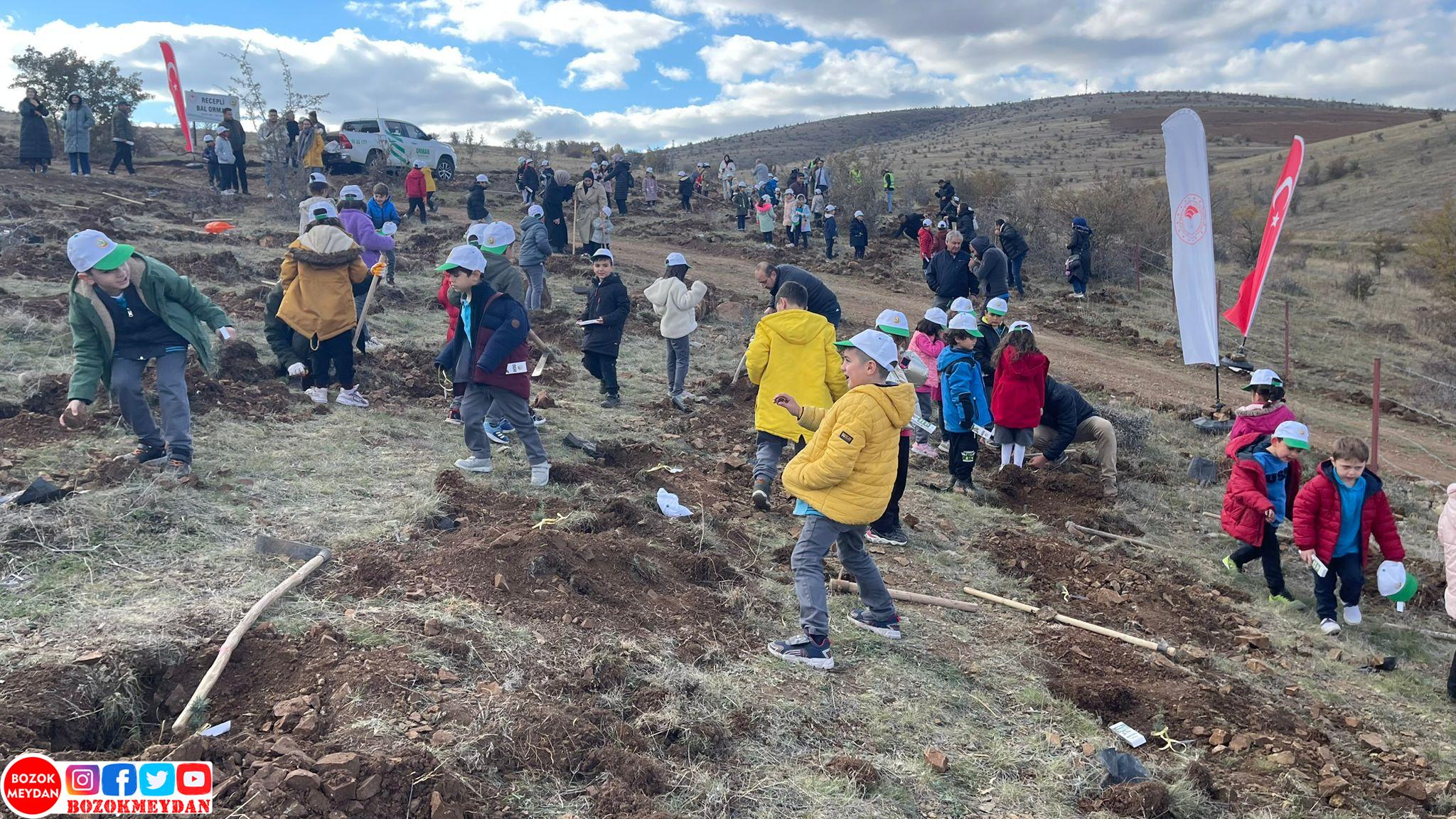 Yozgat’ın merkeze bağlı Recepli Köyü’nde, doğa sevgisi ve çevre bilincini çocuklara aşılamayı amaçlayan “Çocuklar Fidanıyla Büyüsün” projesi kapsamında geniş katılımlı bir fidan dikim etkinliği düzenlendi. Etkinliğe, merkez ve köy okulları ile ilçelerden gelen toplam 5503 birinci sınıf öğrencisi katıldı.