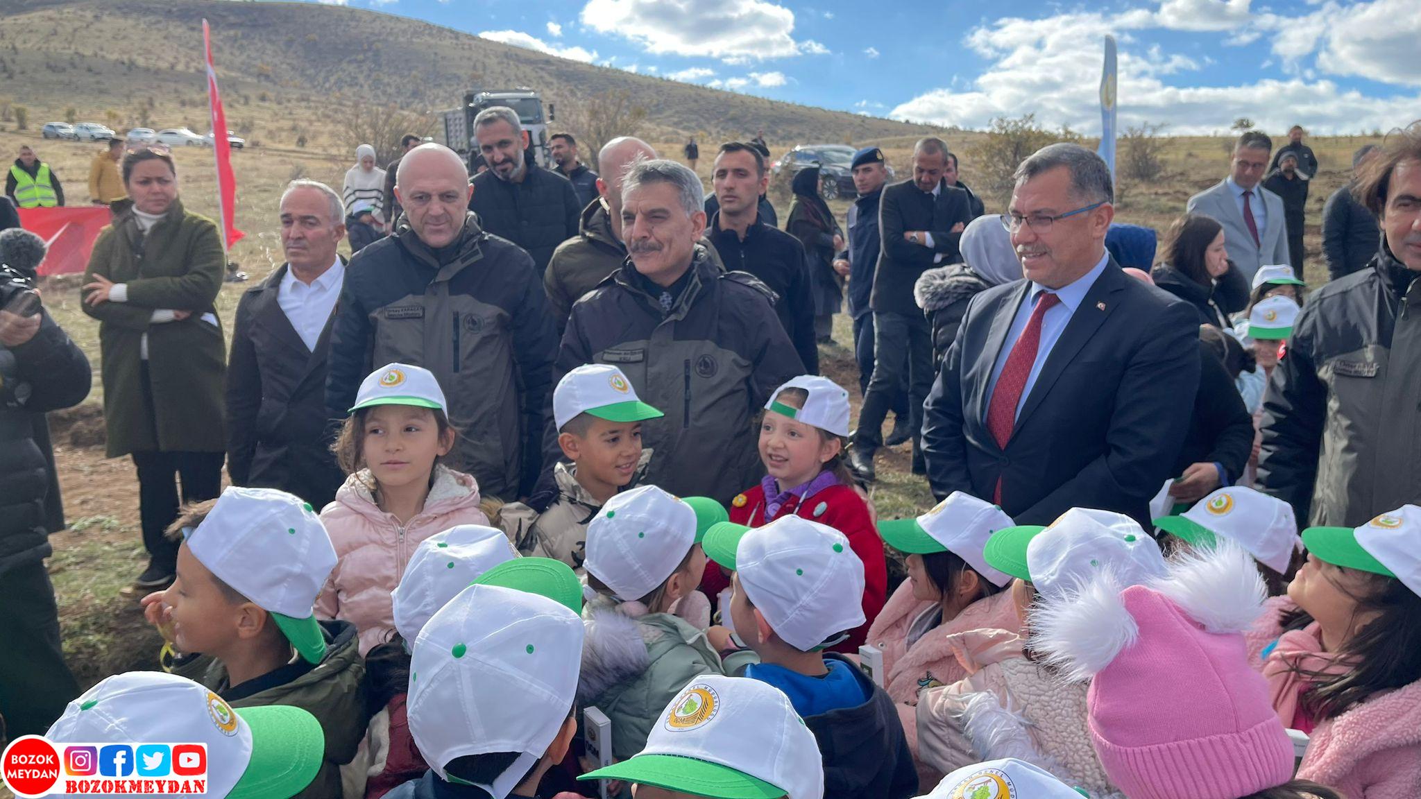Yozgat Valisi Mehmet Ali Özkan da minik ellerle birlikte fidan dikti ve projeye destek verdi.